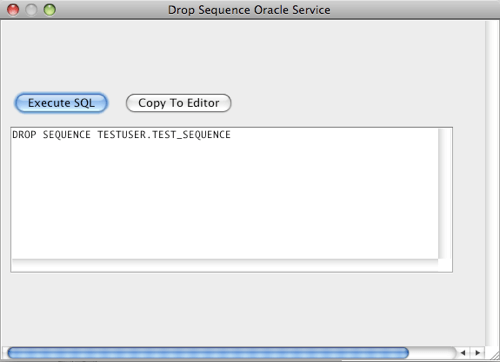 The Oracle Drop Sequence Tool allows users to select a sequenceSequence to be dropped. The tool then generates the SQL to drop the sequence.